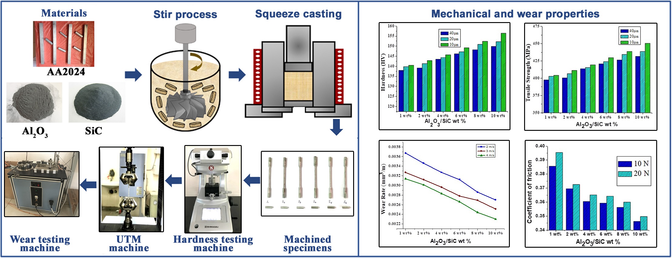 Al2O3/SiC 10 µm particle size reinforced AA2024 significantly enhanced the mechanical and wear properties